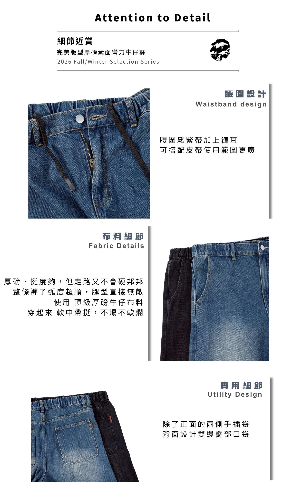 厚磅牛仔布料軟中帶挺,走路有垂墜感卻不會硬邦邦