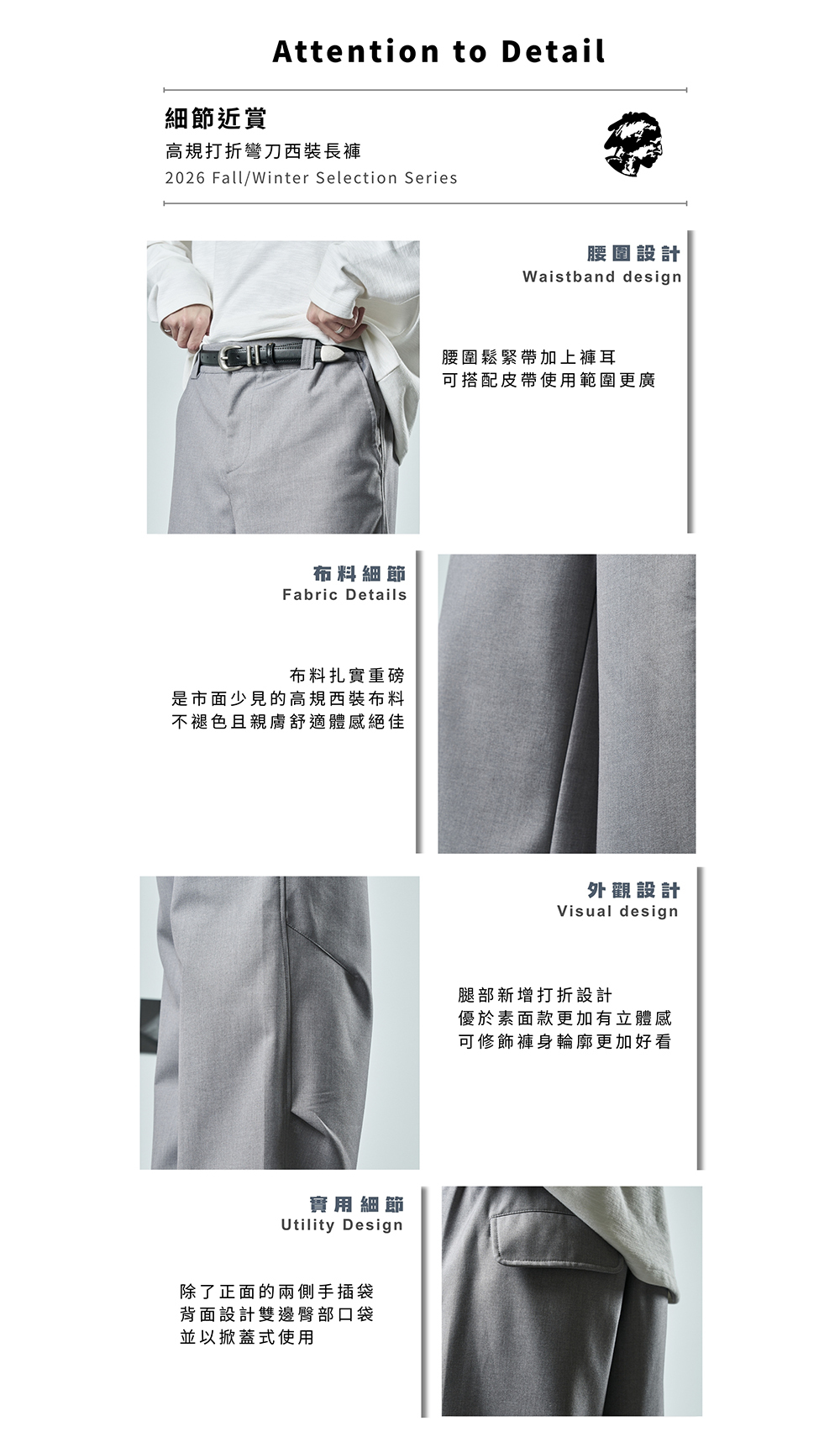 這件西裝褲保有彎刀輪廓,
