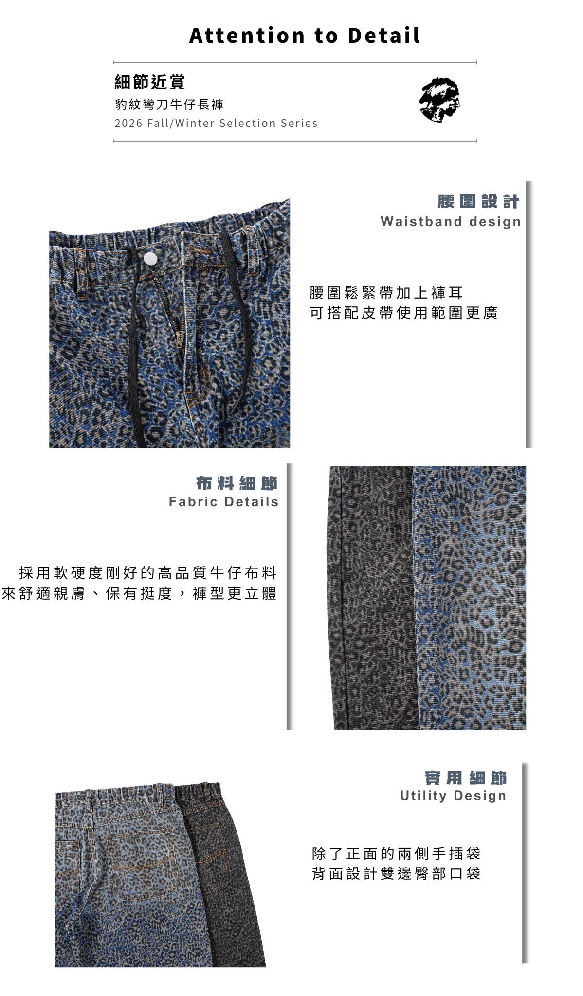 讓每一件豹紋紋路位置都是獨一無二 版型採用寬鬆剪裁搭配微彎刀輪廓