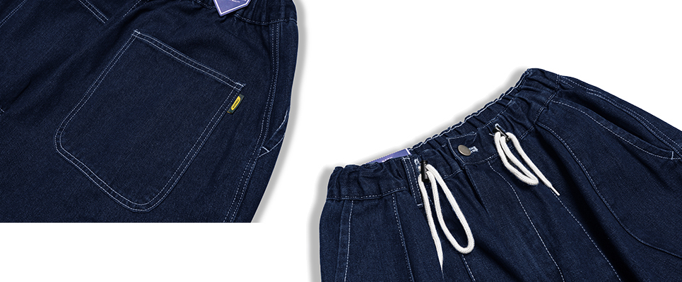 ■ 腰圍採用鬆緊 / 褲耳可用腰帶 / 抽繩 / 鈕扣及YKK拉鍊