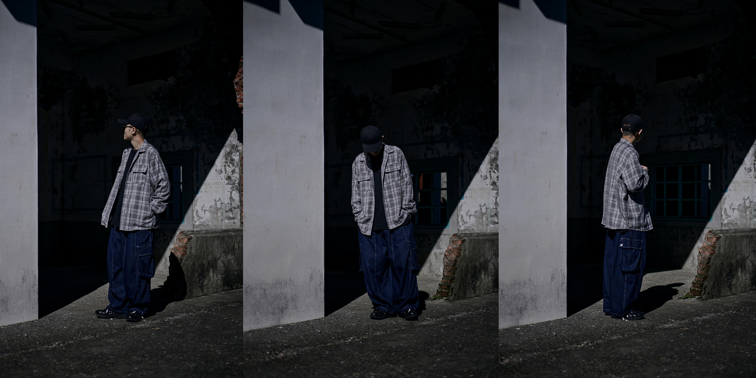 強烈的日系氛圍版型,搭配兩側口袋呈現工作褲