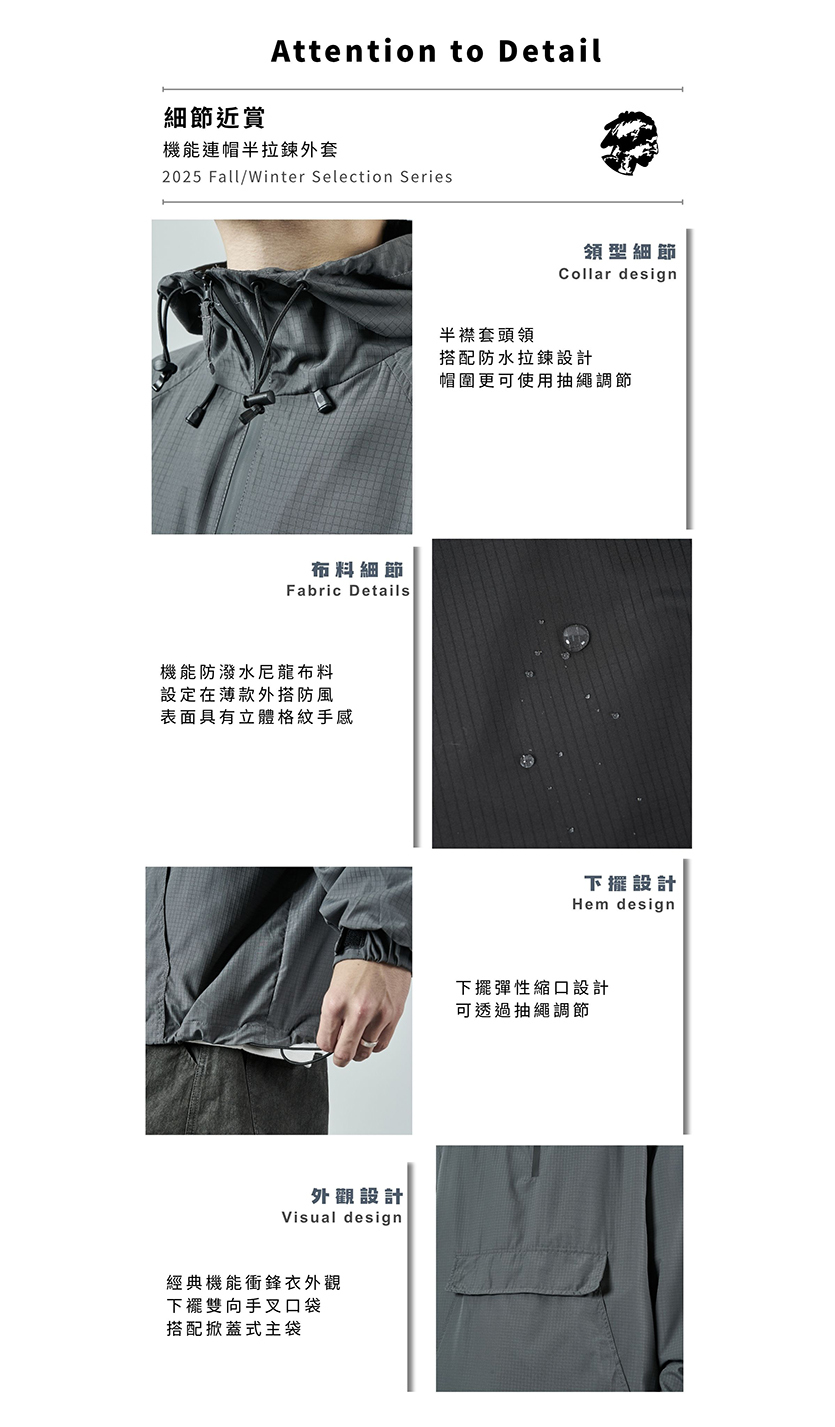 拉鍊則使用防水拉鍊加強對抗雨天的能力